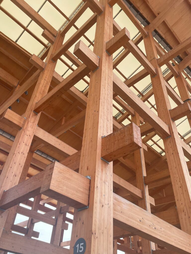 そして、下からの大屋根リング。すごい規模です。1周2キロあるそうですね。万博終了後の行方が気になります。