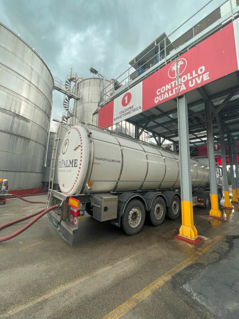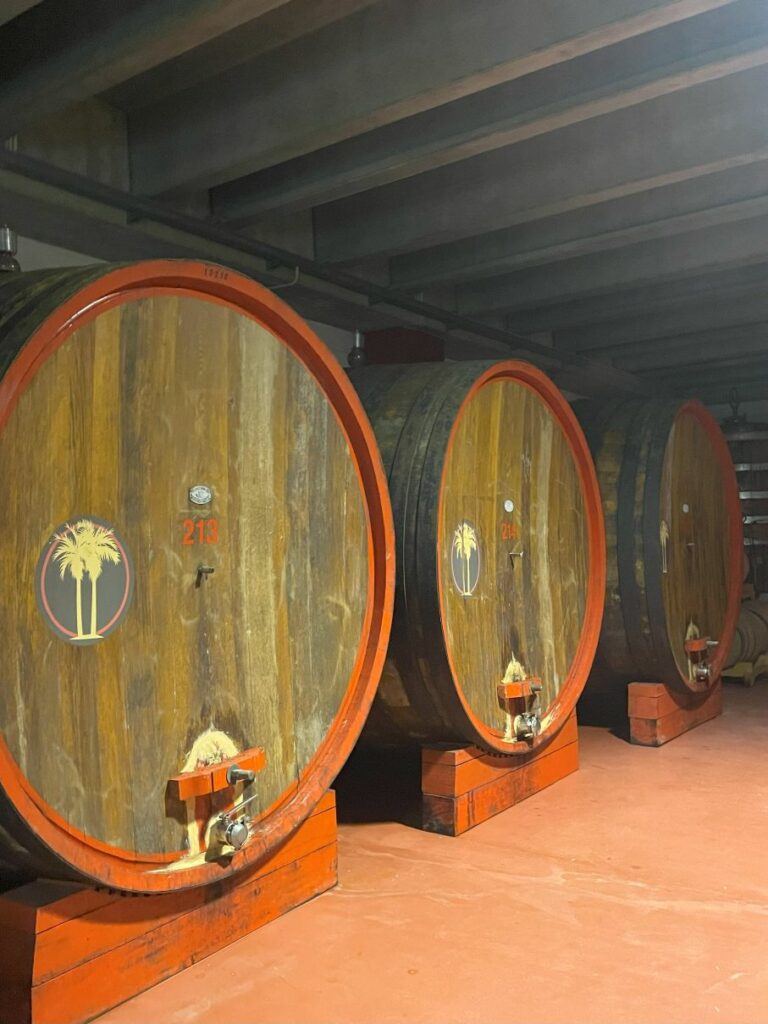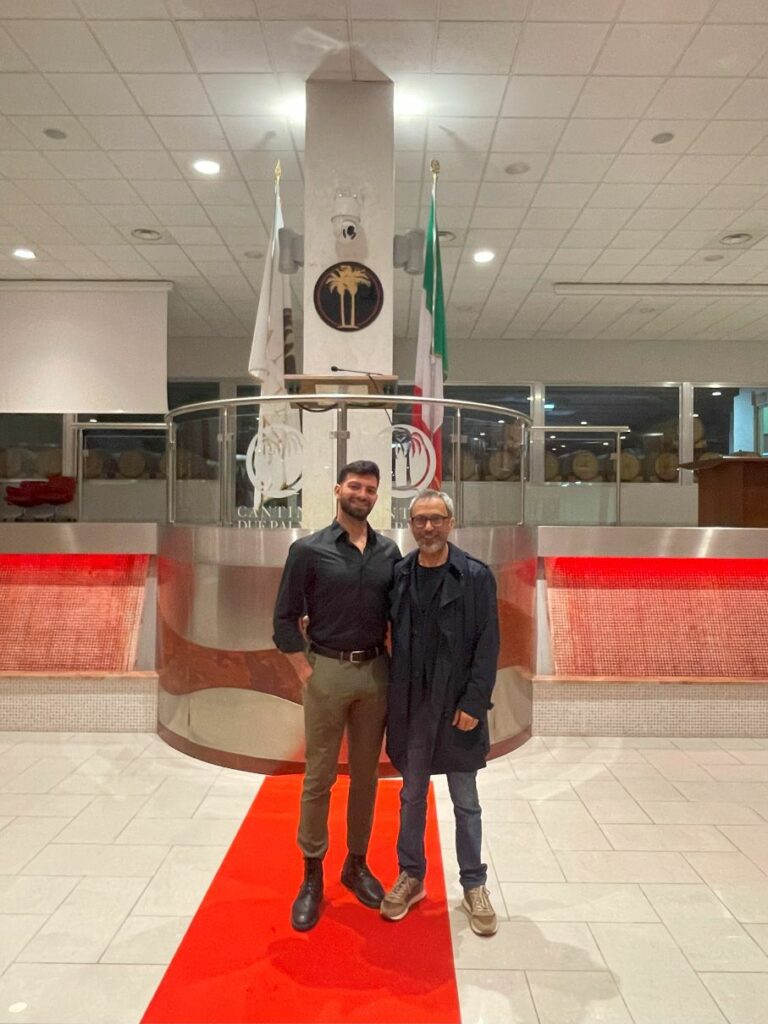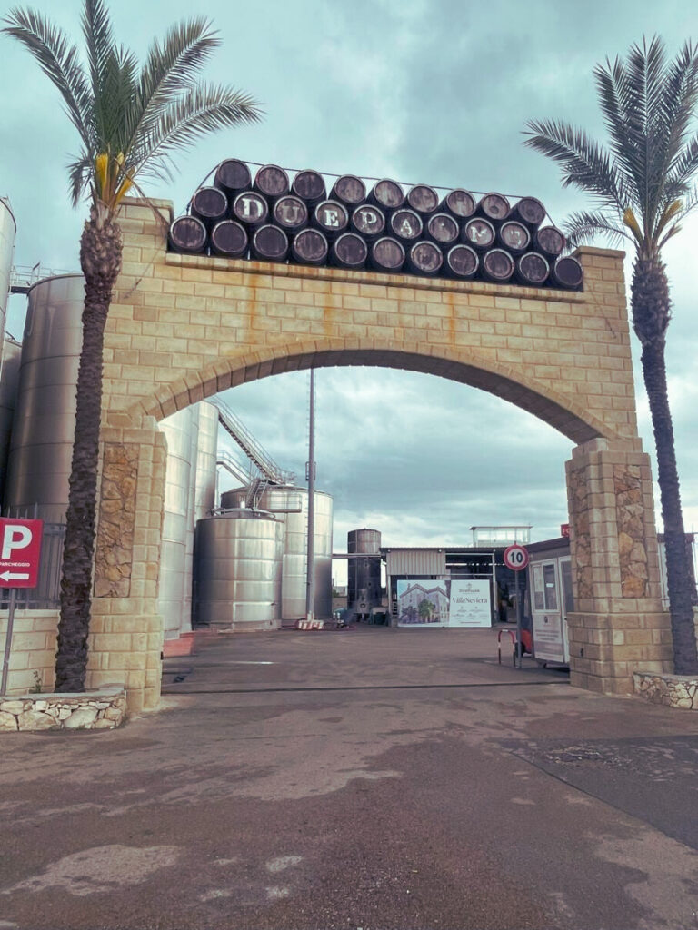Due Palme社は、1989年に設立された共同組合のワイナリーです。プーリア州でも指折りの規模で、Webサイトによると、「ブリンディジ、レッチェ、ターラントの各県で2,500ヘクタール以上のブドウ園で1000人以上の生産者がブドウを栽培している」とのことです。規模が大きすぎて、想像を超えますね。伝統を守り、高品質なブドウを栽培しつつ、最先端の技術を取り入れ、年間1700万本ものワインが作られているそうです。
